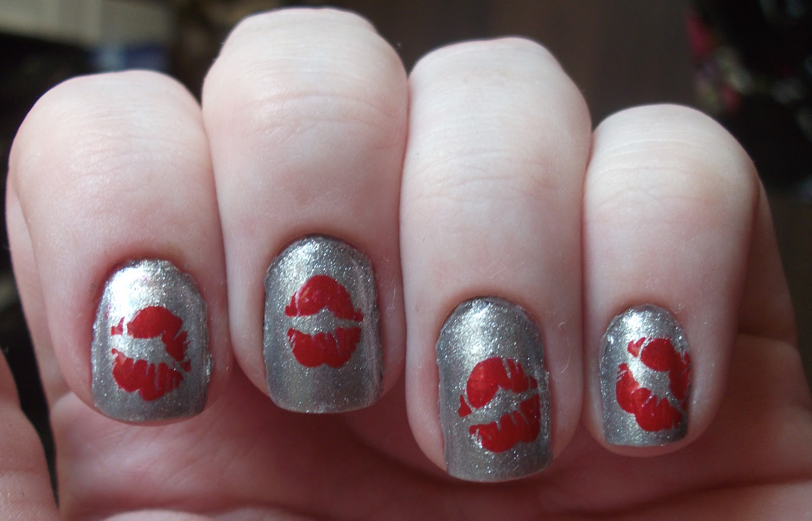 Hey! As soon as I saw the lips on my new BM plates I knew I needed a silver mani with red lips! I wish my nails were long/the lips were smaller so I could fit more than one lip on each nail, when my nails are longer I'm so going to be doing this mani again! The polishes I used were Barry M Silver and Red Konad Special Nail Polish with BM-02.